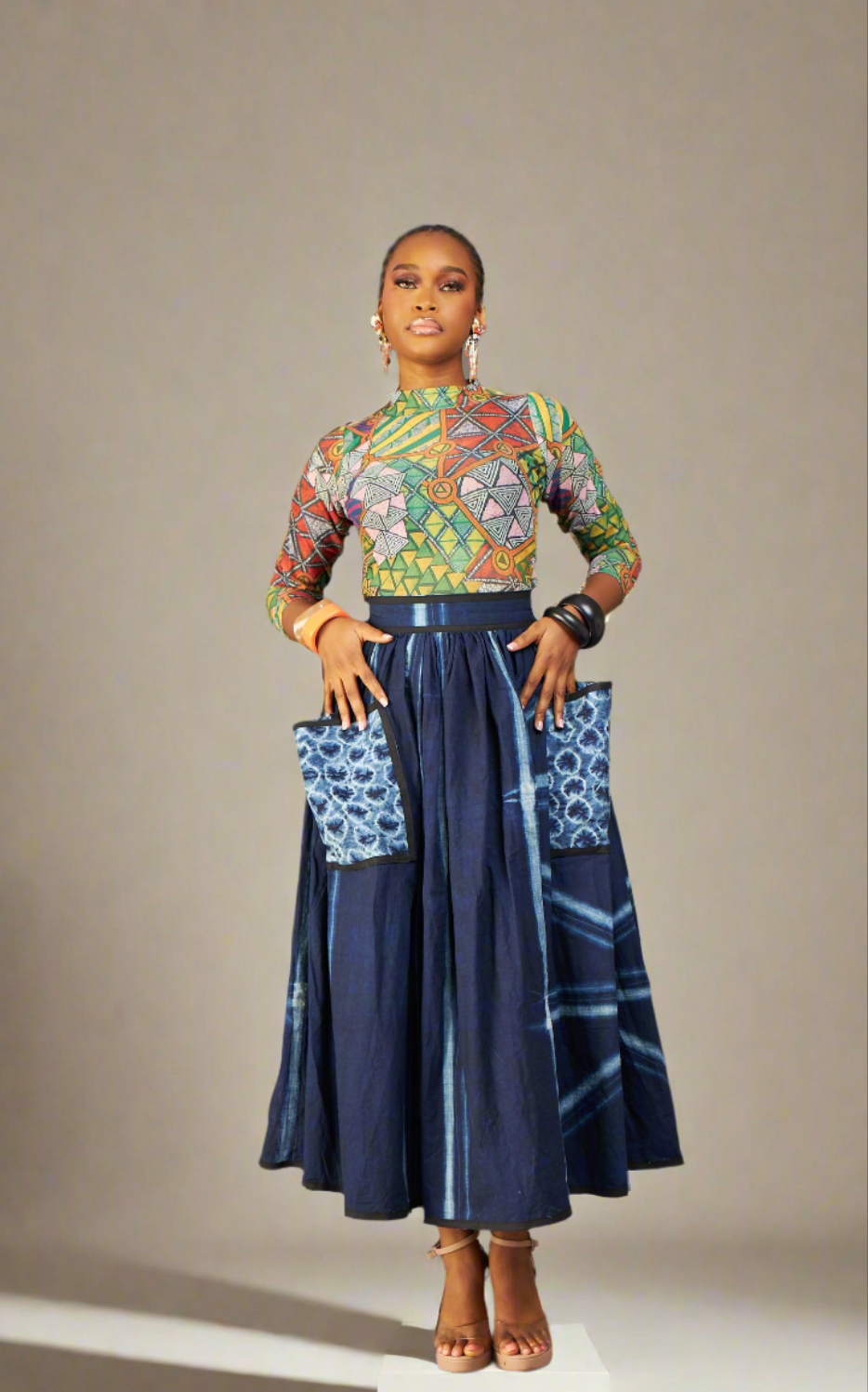 Full midi skirt made from hand-dyed Adire (Kano origin)